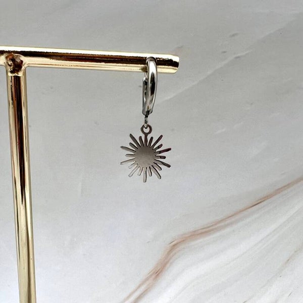 Aan deze mooie oorbel hangt een zonnetje. De oorbel is niet zwaar om te dragen.