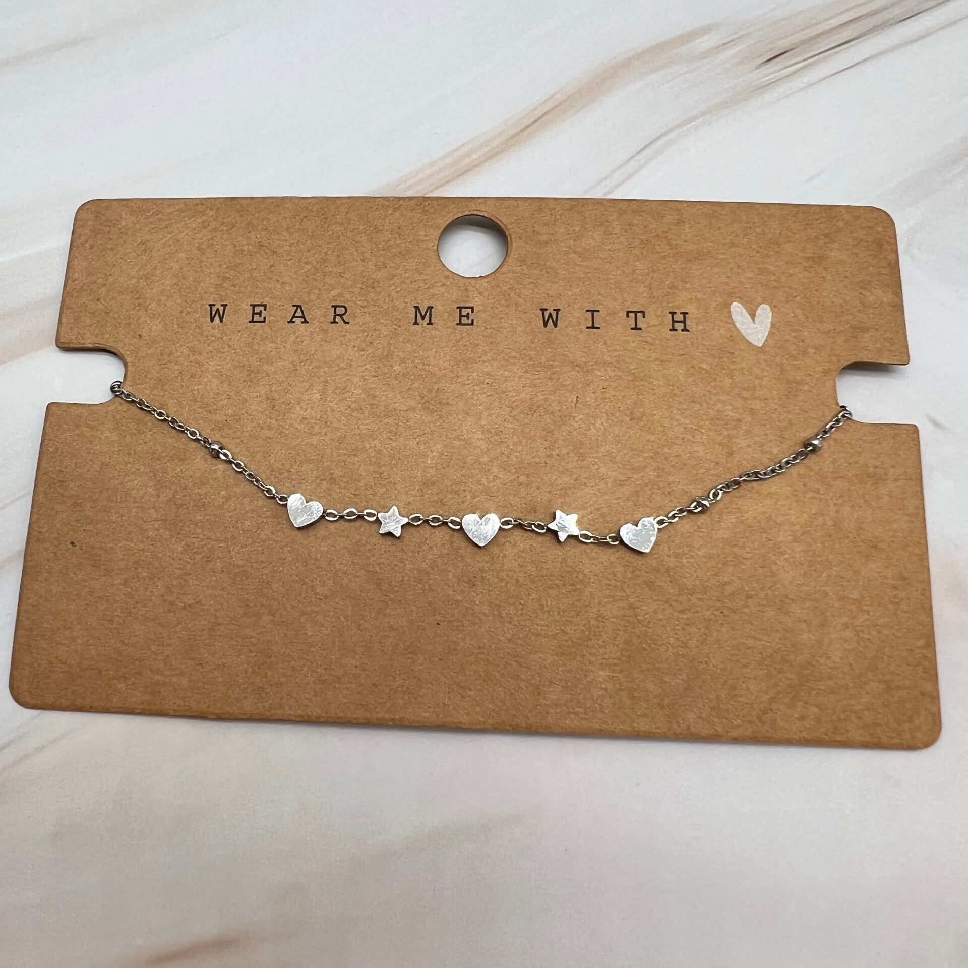 Dit is een Stainless steel armbandje met hartjes en sterretjes. Deze armband is allergie-vrij.
