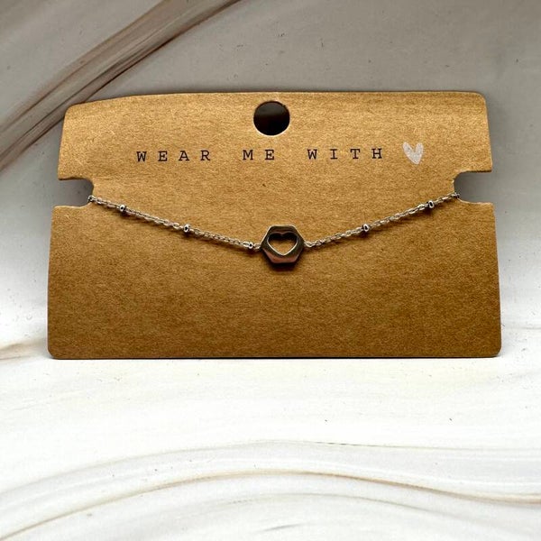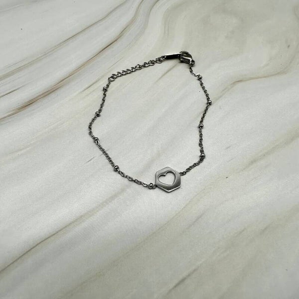Dit is een Stainless steel armbandje met een hartje. Je kunt deze gebruiken als moeder en dochter armband. Ik heb namelijk ook eentje met een munt bedel met een hartje eruit. . Zie de laatste twee foto's. Deze armband is allergie-vrij.