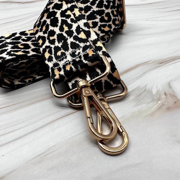Kleur: beige, zwart en gouden karbijnsluiting.