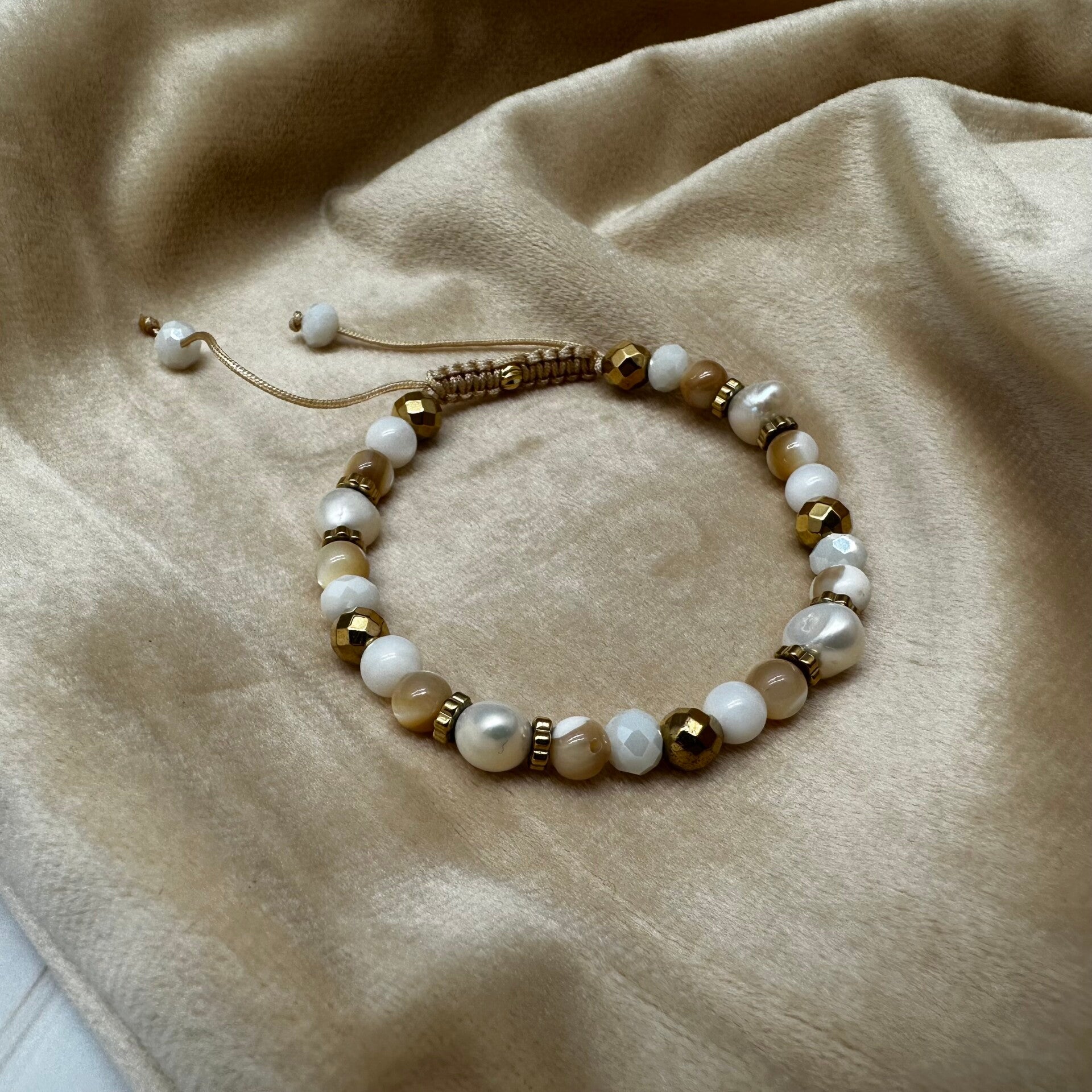 Het mooie van deze armband is dat door de macrame sluiting hij altijd past. Liever elastiek of met een krabijnsluiting. Geef dit aan bij wensen.