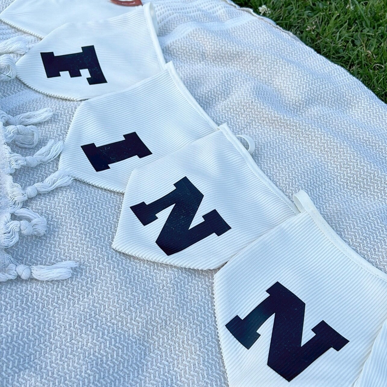 Een toffe vlaggenlijn met naam. Super leuk om als kraamcadeautje of verjaardagscadeautjes te geven. Een vlaggenlijn word door jou zelf samengesteld. Doormiddel van kleuren door te geven ga ik stofjes samenvoegen. Ik communiceer dit met jou. Ben je akkoord dan ga ik voor je aan de slag en komt er een unieke vlaggenlijn bij jou.