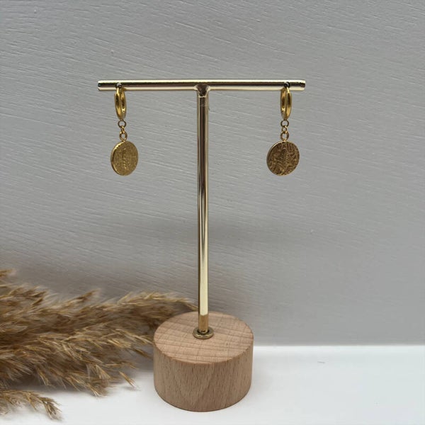 De oorbel is van RVS, en ongeveer 11mm. De munt is 12mm breed. De totale lengte van de oorbel is 32mm.