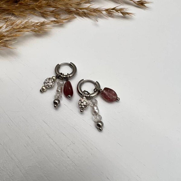 Deze oorbel is een ringetje met verschillende hangers eraan. Het mooie van deze oorbel is dat je kunt mixen. Je kunt er wat kralen af halen en weer aanhangenn. Je kunt dus extra bedels bijbestellen. De oorbel is niet zwaar om te dragen.
