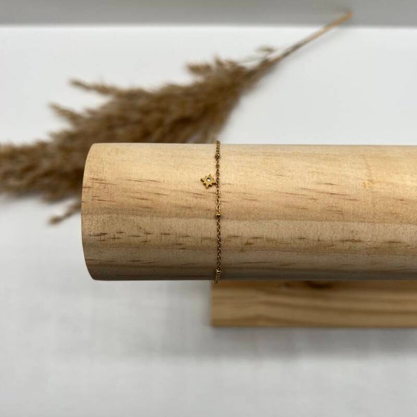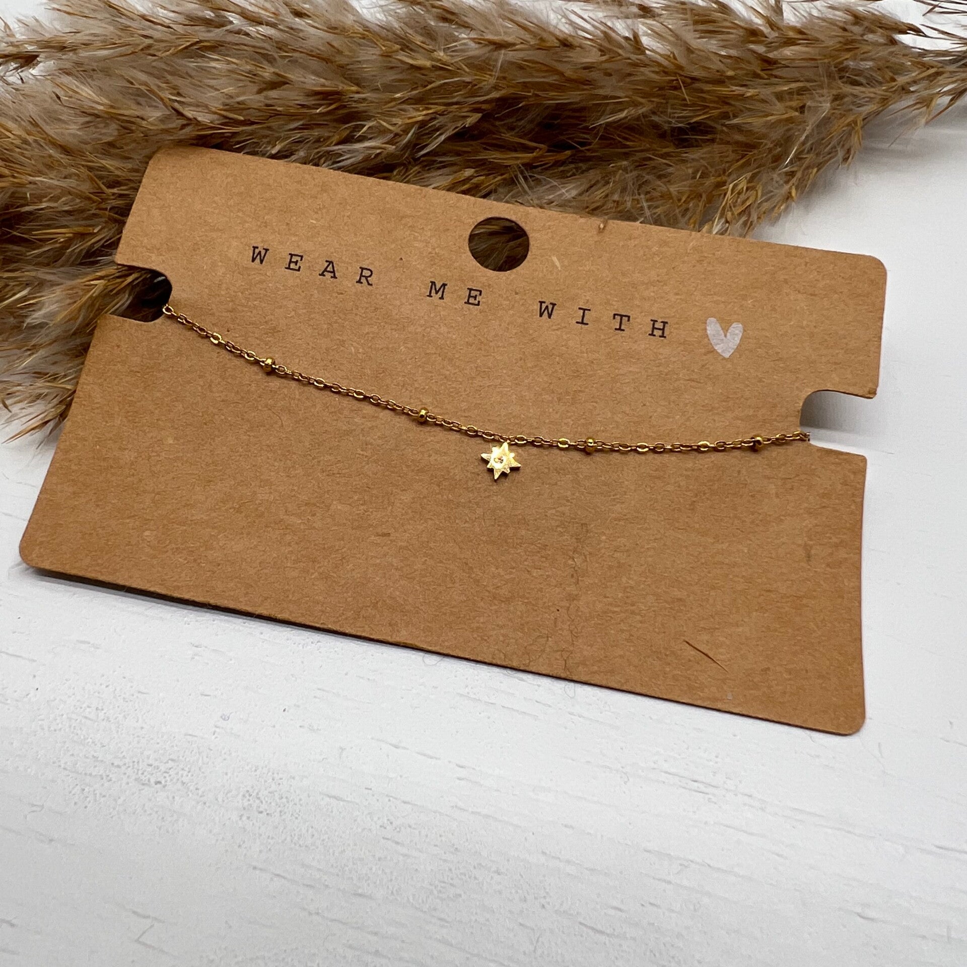 Deze armband heeft een ster in het midden van de armband met een wit diamantje erin.