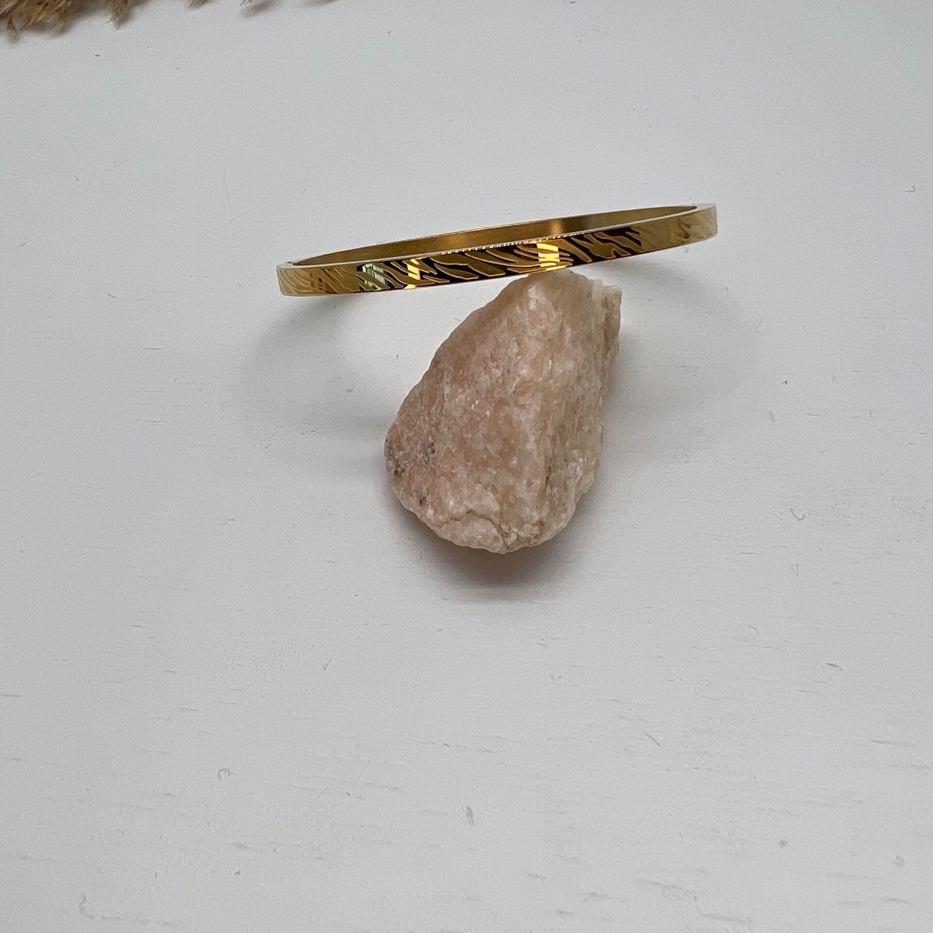 Deze armband heeft een tekst erop staan. Love life & enjoy every moment. De armband is van een mooie zware kwaliteit en allergie-proof.